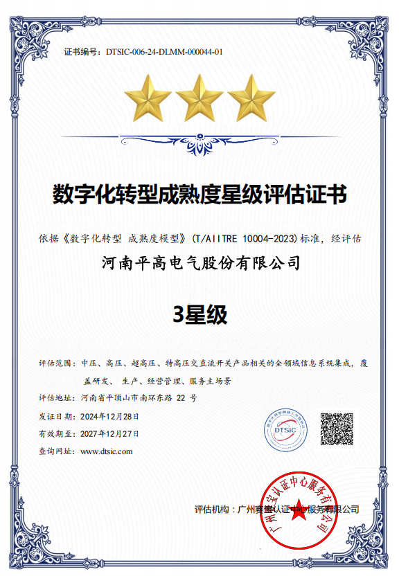 数字化转型成熟度星级评估证书