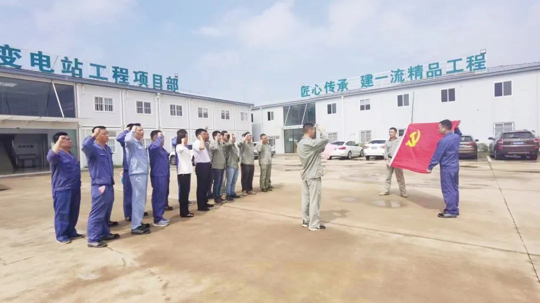 ➤发挥党支部在生产履约中的战斗堡垒作用。williamhill官网在武汉1000千伏变电站新建工程现场开展“旗帜领航、争先进位”主题党日活动,组织现场党员重温入党誓词、学习国家安全生产月专题宣传片,推动党建与施工现场安全生产融合互促。