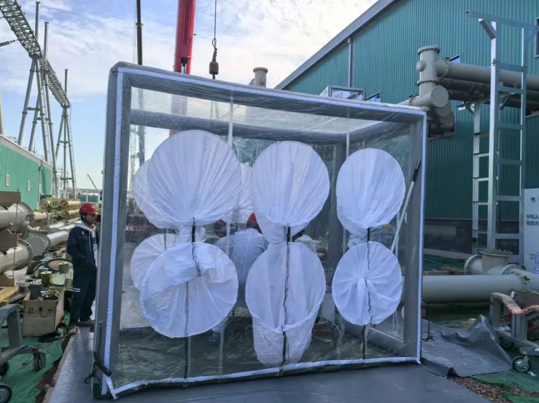 安装过程中严格执行“四无”管理,针对不同作业场景,设计防尘室及大、中、小型防尘棚,形成立体防护网,主设备、户内母线、户外分支母线均在不同的防尘棚内施工作业。固化包装盖板拆解的“三吸两擦“,精准去除法兰面、螺栓孔等部位异物。对接点检作业采用“吸-擦-吸”循环的方式,杜绝外部异物混入。现场通过实施差异化管控,有效控制异物,及时消除隐患,为高质量安装及“零缺陷”交付奠定基础。