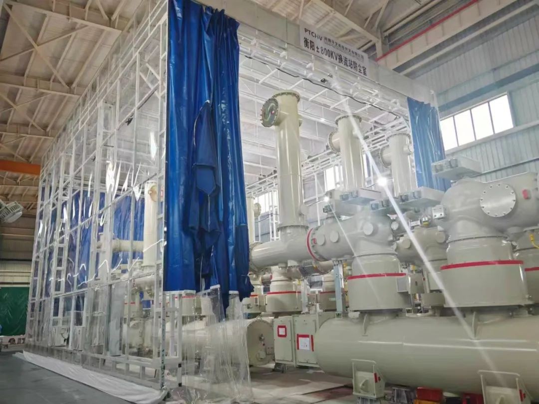 设备安装是换流站建设的核心环节,现场采用八级防尘法,“观尘、抑尘、降尘、除尘、控尘、挡尘、绝尘、计尘”,控制设备安装环境,构建“分级防尘棚+循环吸擦技术”管理模式,以百万级洁净度保障设备“零尘埃”交付。
