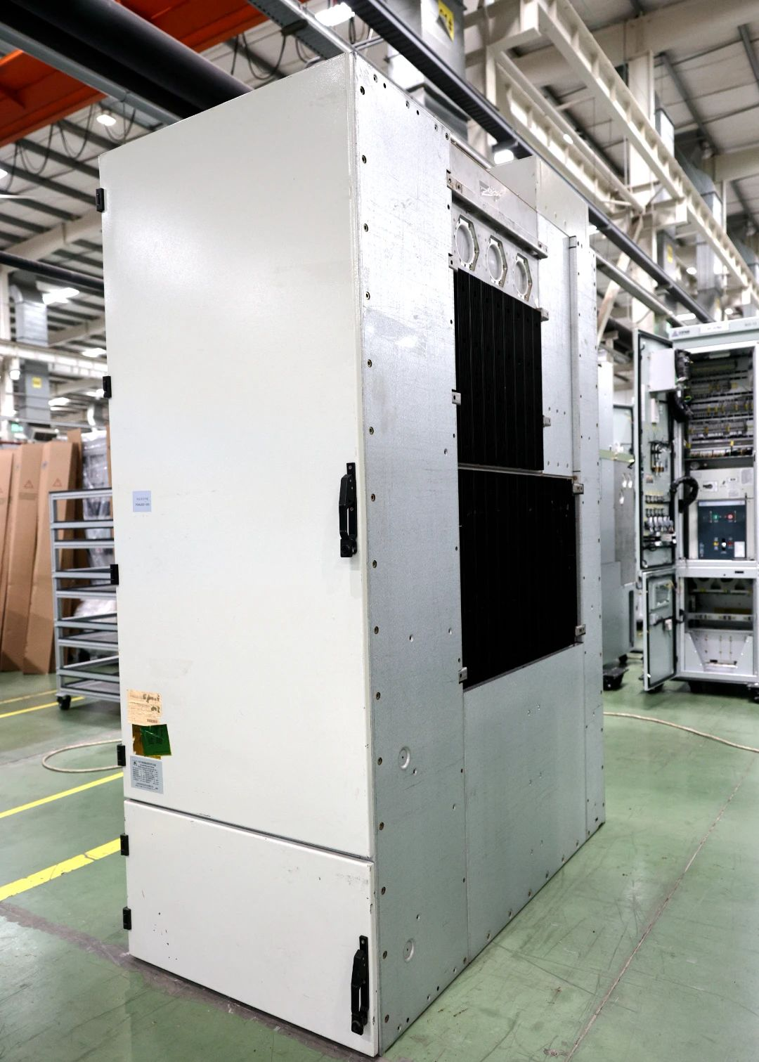 “N2S-40.5(Z)/T3150-31.5户内气体绝缘金属封闭开关设备”通过电场优化和散热技术的应用,设计开发了散热型固封极柱、小型化分体式内锥套管、补偿型大电流绝缘母线插拔连接结构、多层花瓣式母线和半导体智能控温铝盖板、可调支撑的三工位开关等核心元件,研制成功了最低功能压力低至零表压(20℃)的气体绝缘开关柜。产品性能参数符合GB3906-2020及DL404-2018标准要求,在零表压下通过了1.1倍额定电流温升试验,在1.1倍额定电压下整机局放小于10pC,具备高可靠、免维护、小型化显著优势,高强度箱体结构满足4000米海拔要求,可适配各类严苛应用场景。产品通过全套型式试验验证,综合性能达到国际领先水平。